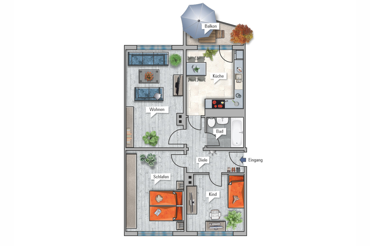 Die verfügbaren Wohnungen umfassen 1-Zi.-, 2-Zi.- und 4-Zi.-Wohnungen mit einer Größe von etwa 36 bis 86 m². Diese Vielfalt an Wohnungsgrößen ermöglicht es Singles, Paaren und Familien, die passende Wohnlösung entsprechend ihrer persönlichen Lebenssituation zu finden.