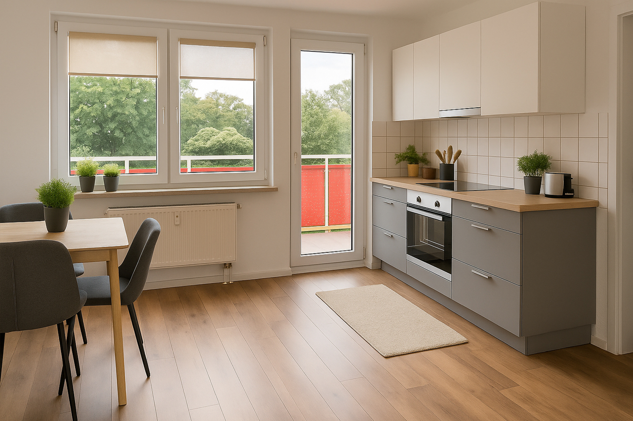 Die Wohnungen in diesem Mehrfamilienhaus wurden im Rahmen der Sanierung modernisiert und bieten somit zeitgemäßen Komfort. Die Räume sind gut geschnitten und bieten ausreichend Platz für Wohn-, Schlaf- und Arbeitsbereiche. Große Fenster sorgen für eine helle und freundliche Atmosphäre in den Räumen.